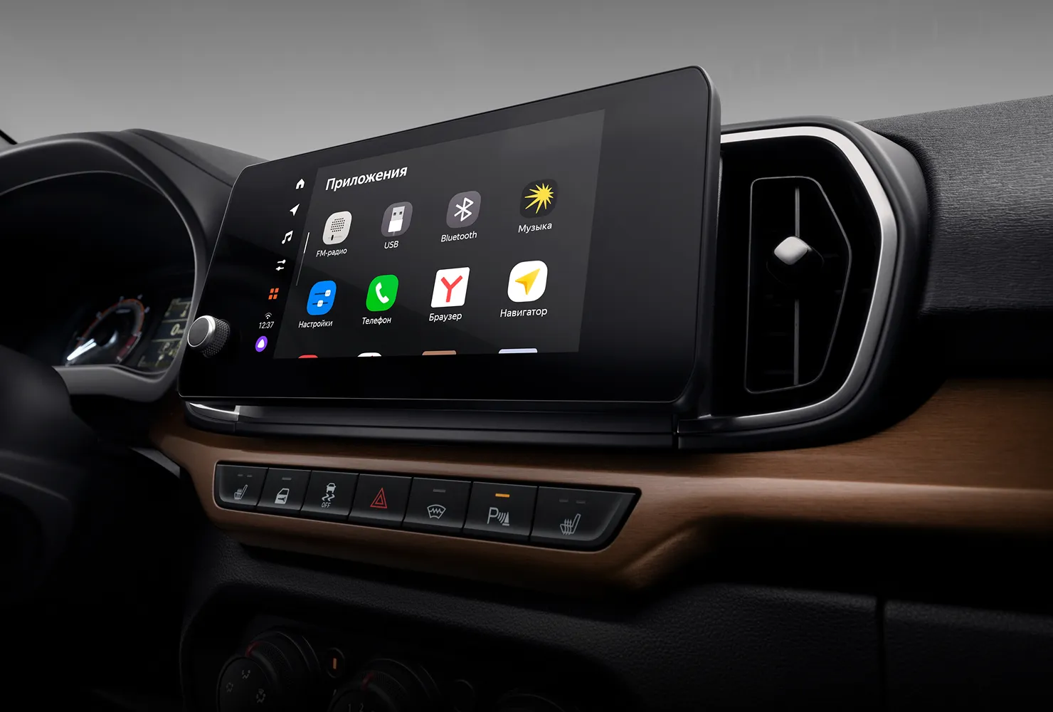 Мультимедийная система LADA EnjoY Evo (8'' TFT-IPS ёмкостный дисплей, FM, 2USB, Bluetooth, Hands Free со сдвоенным микрофоном и функцией шумоподавления, интегрированная платформа Яндекс Авто с виртуальным ассистентом Алиса с функциями голосового управления ММС и Яндекс Навигатором), 4 динамика